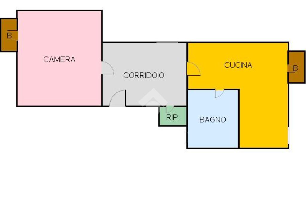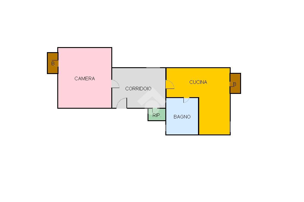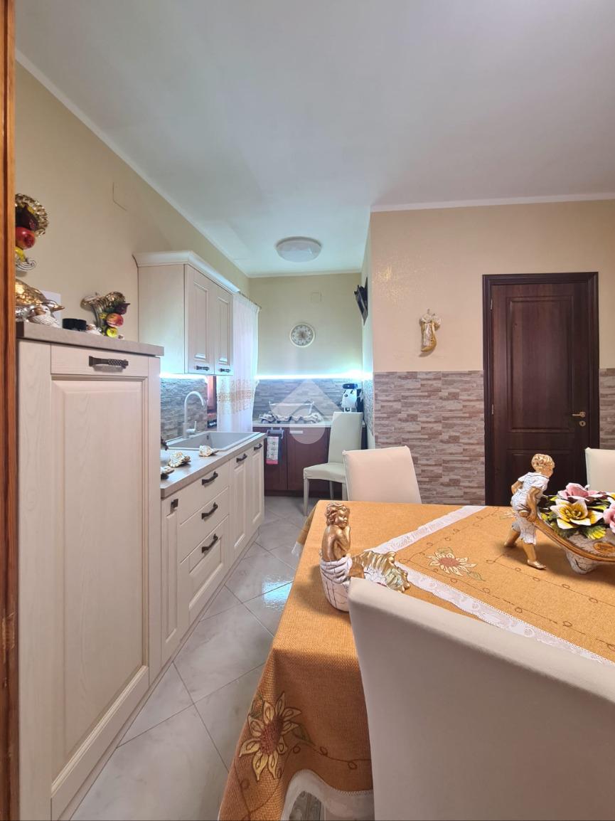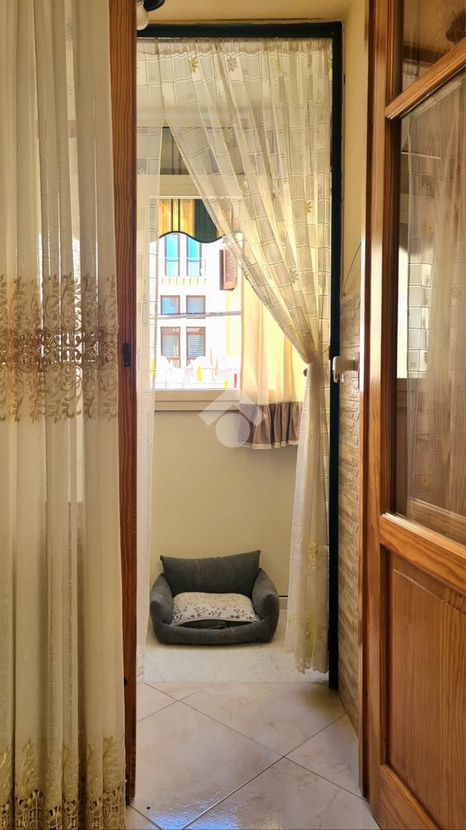 L'appartamento si compone di un ampio ingresso che disimpegna la camera da letto matrimoniale con balcone, la cucina abitabile con annessi wc-doccia e balcone verandato ed un piccolo ripostiglio.